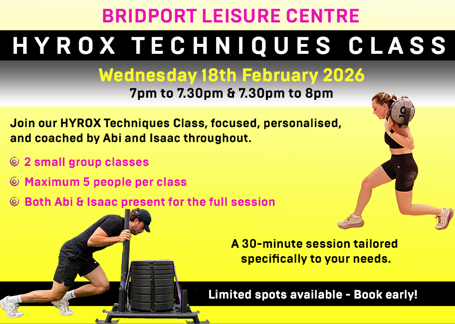 The format is practiced in our classes, so be sure to sign up to classes start your training! For class details visit: https://bridportleisure.com/fitness-classes/hyrox/